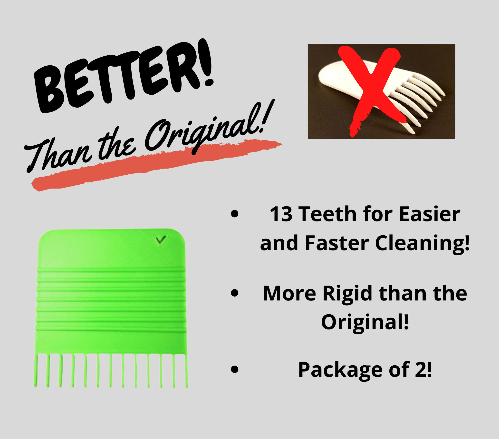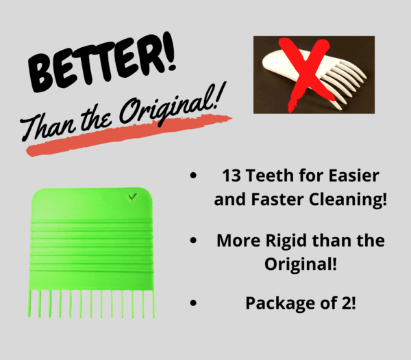 2 PACK – We have been using our 3D printed version for over 2 years before needing to print a second. Each order includes 2 Cleaning rakes!