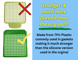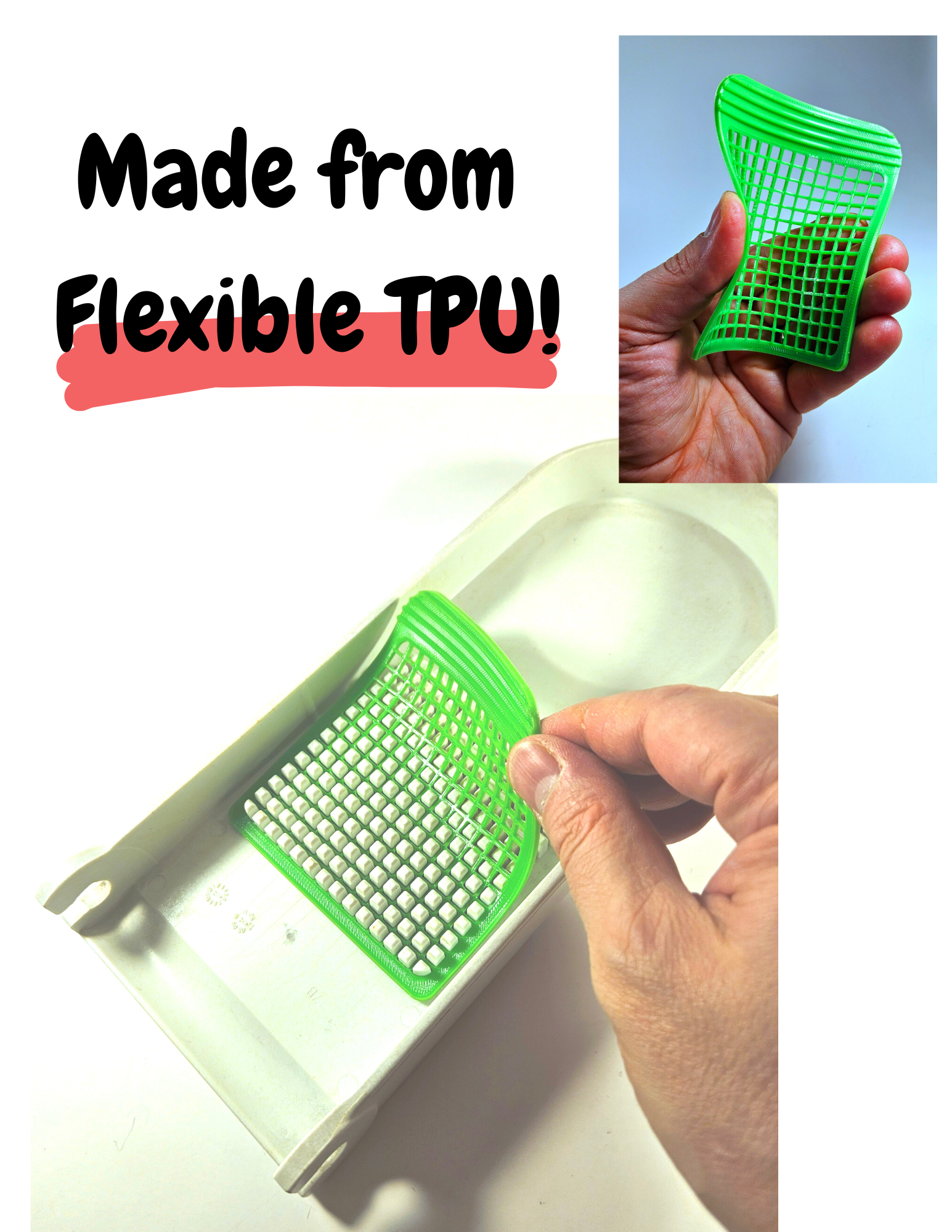 ENVIRONMENTALLY FRIENDLY TPU Plastic – Our design is 3D Printed from TPU plastic. Designed to be a flexible stronger version than the original that is provided with the Vidalia Chop Wizard making the task of cleaning your onion chopper less time consuming.