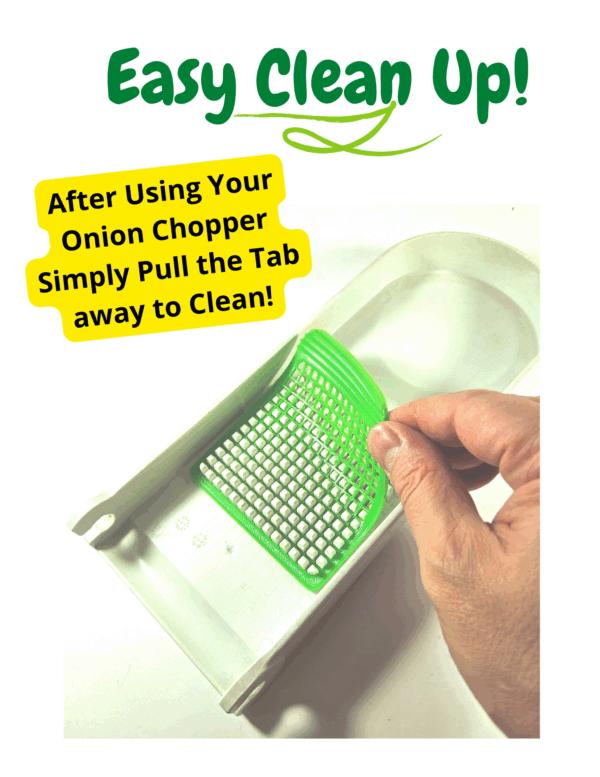 EASILY CLEAN – My wife and I love our Onion Choppers but we were never impressed with the tool that comes with them…making the task time consuming and easily breakable. With our Simple Press On Design cleaning your onion chopper is now easier than ever!