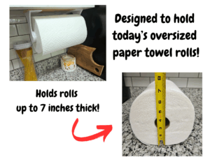 OVERSIZED PAPER TOWELS – Our paper towel holder is designed to meet the new standard of today’s oversized paper towels allowing the roll to freely turn to easily pull off a paper towel from a new roll. Our design holds paper towel rolls up to 7 inches thick.