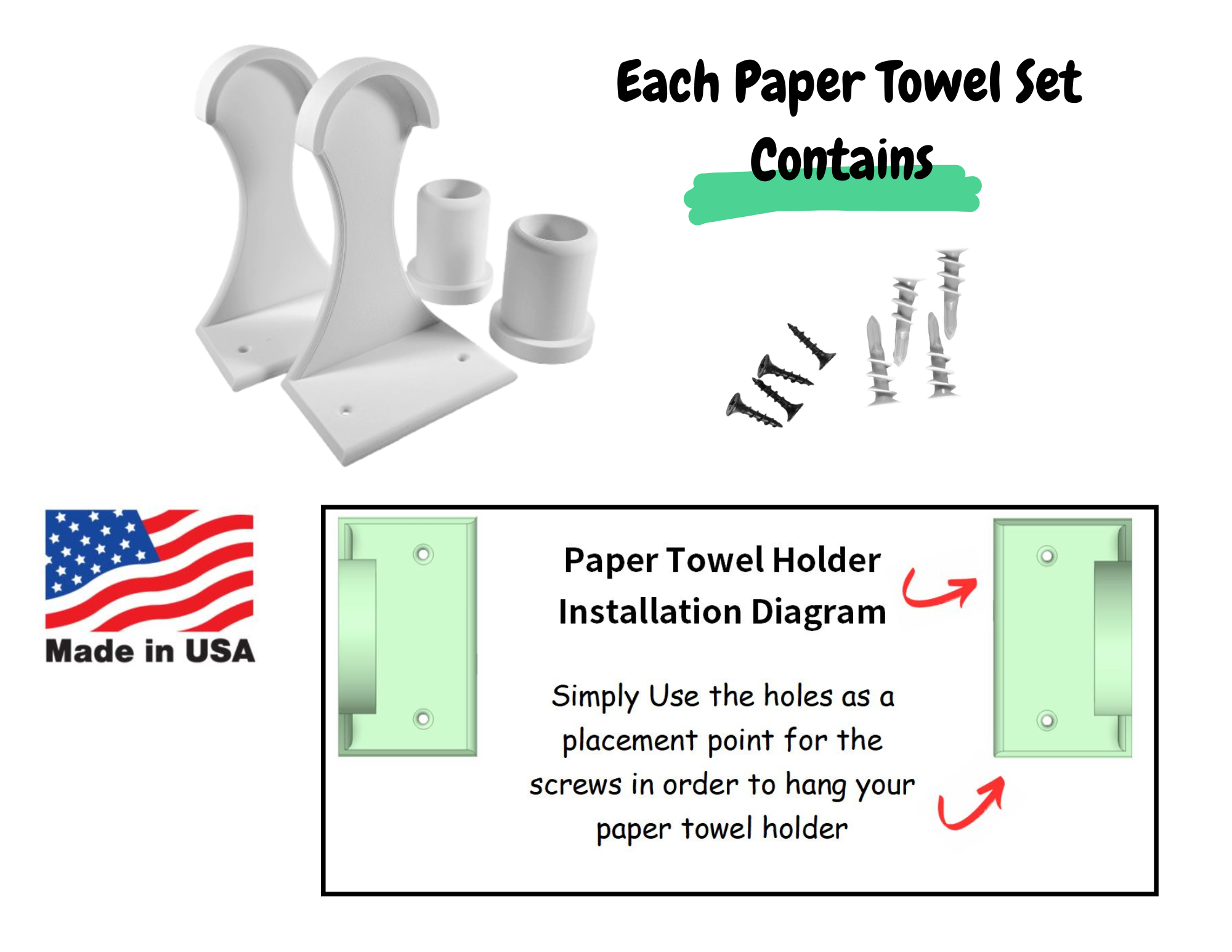 100% SATISFACTION GUARANTEE – We Love and Stand Behind Our Products. We Know You will love them too……if for any reason you are not satisfied with our Paper Towel Holder, please let us know and we’ll be more than happy to allow for a return to refund your purchase!